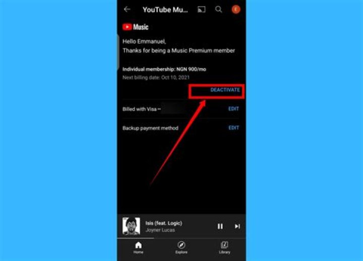 To cancel or suspend your subscription, click the Deactivate button. Clicking the deactivate button gives you the option to cancel or suspend your YouTube Premium subscription. Canceling a subscription is permanent, will terminate access to all subscription benefits and will delete any videos or music you have downloaded (including saved playlists).