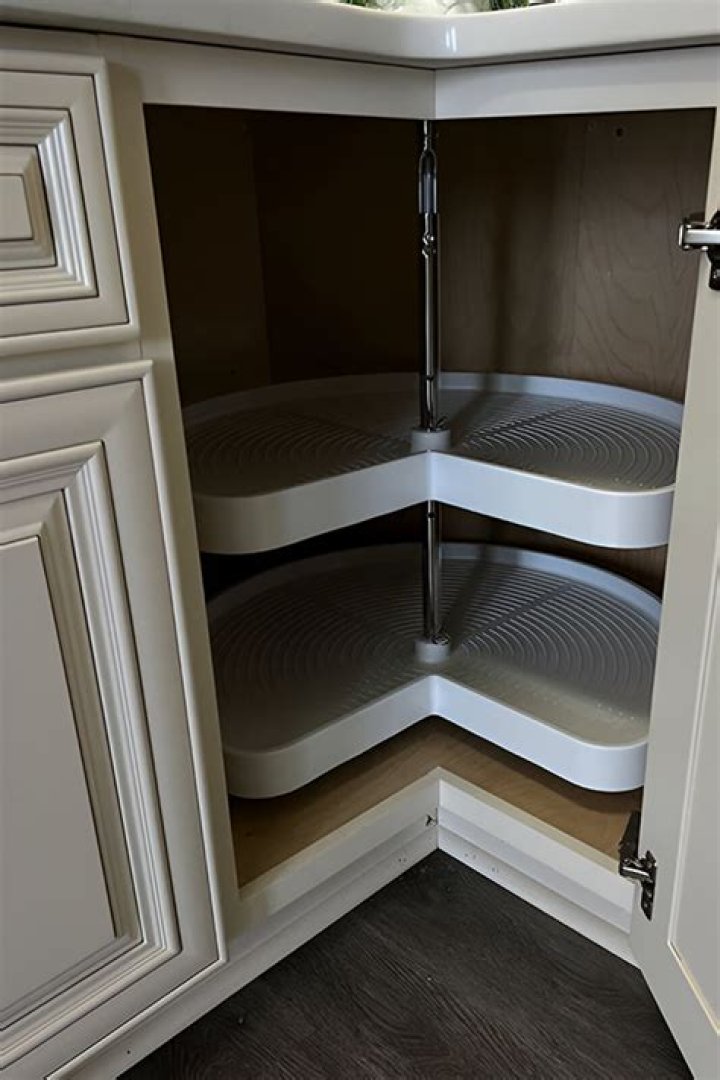- Provide a kitchen cabinet with blank corners. Semicircular lazy suzannes (sometimes called crescent moons) are specially designed for these rather tall cabinets.