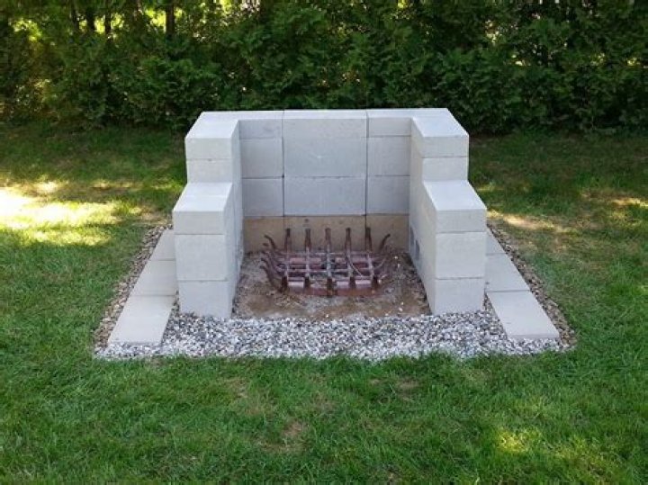 You can build a cinder block fire pit directly on the ground. … You don’t want to use a compressed concrete block that’s too dense in a fire pit. It must be porous enough to vent any steam that forms inside as trapped water turns to steam. If blocks aren’t porous, they could explode as steam builds.