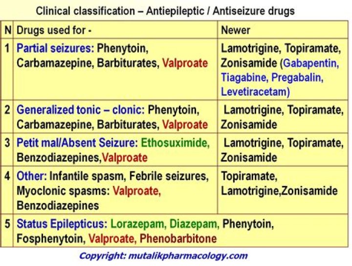 Most other AEDs have been reported occasionally to cause seizure aggravation. The lowest risk of seizure aggravation appears to be with valproate. Risk factors for worsening of seizures are epileptic encephalopathy, polytherapy, high frequency of seizures, and cognitive impairment.