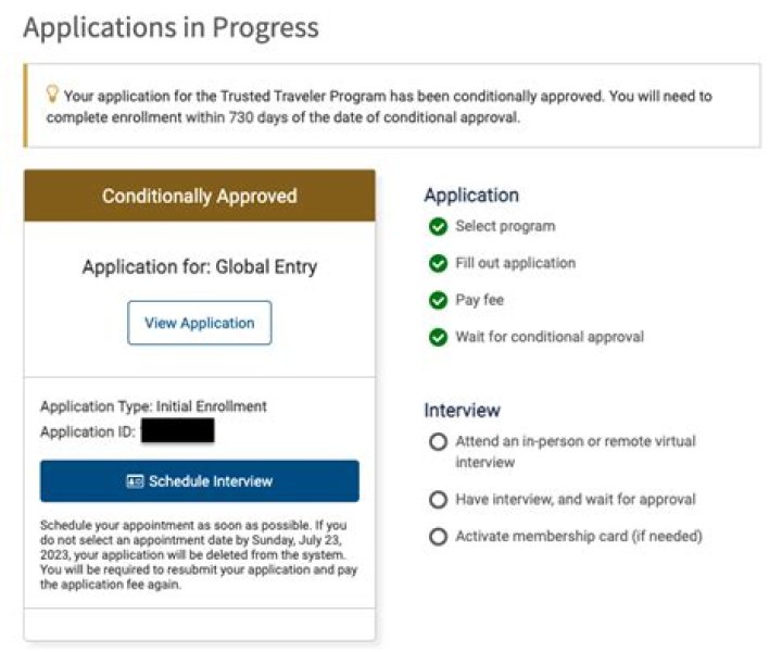 What does conditionally approved for Global Entry mean?