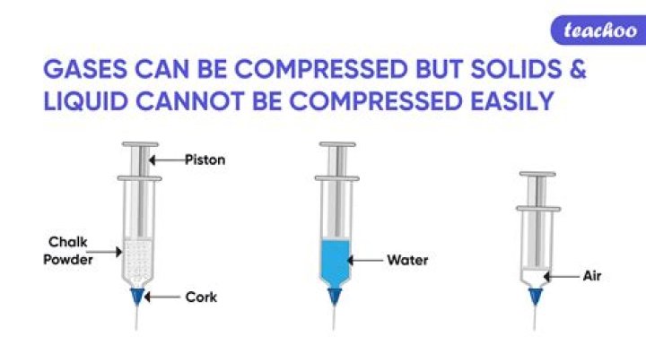 Air is more compressible than water. Both water and air are made of particles. There is more space between air particles so they can be pushed closer together.