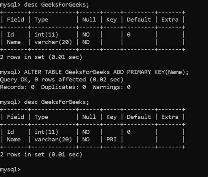 How do you add a primary key in a table?