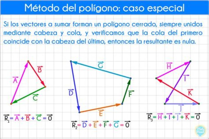 El método del polígono, o también conocido como cabeza y cola, es un método que permite sumar vectores y consiste en colocar los vectores a sumar uno a continuación del otro, siempre la cabeza de un vector estará unida a la cola del siguiente; así, el vector resultante R̄ se traza uniendo la cola del primer vector con …