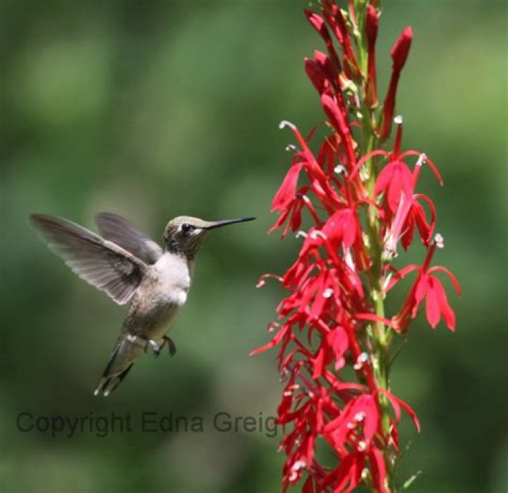 Cardinal Flower (Lobelia Cardinalis) This perennial plant produces vivid cardinal-colored flowers in the summer months. The bright red color of the flowers and the sweet nectar they contain attract hummingbirds in droves.