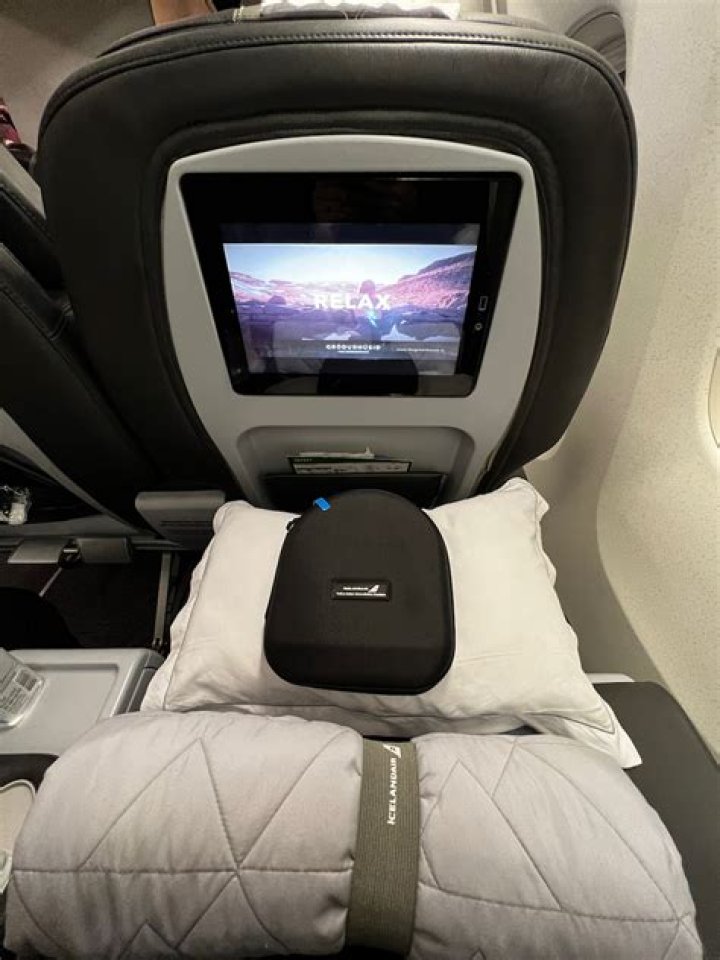 Saga Premium is Icelandair’s premium cabin class, with wide seats and more legroom. Saga Premium passengers enjoy perks like priority check-in and lounge access before they fly. In the air, there are fluffy pillows, noise-canceling headphones, complimentary food and drinks, and superior privacy and service.