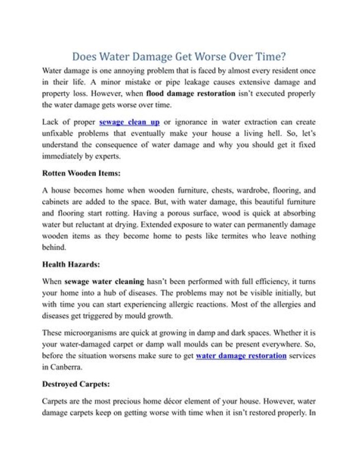TLDR: It takes about 72 hours for areas affected by water damage to dry completely. But, it only takes about an hour for the water to begin causing damage to your home. For this reason, you should contact a water damage restoration company like Steamy Concepts as soon as possible.How long does it take for water damage to affect a phone?