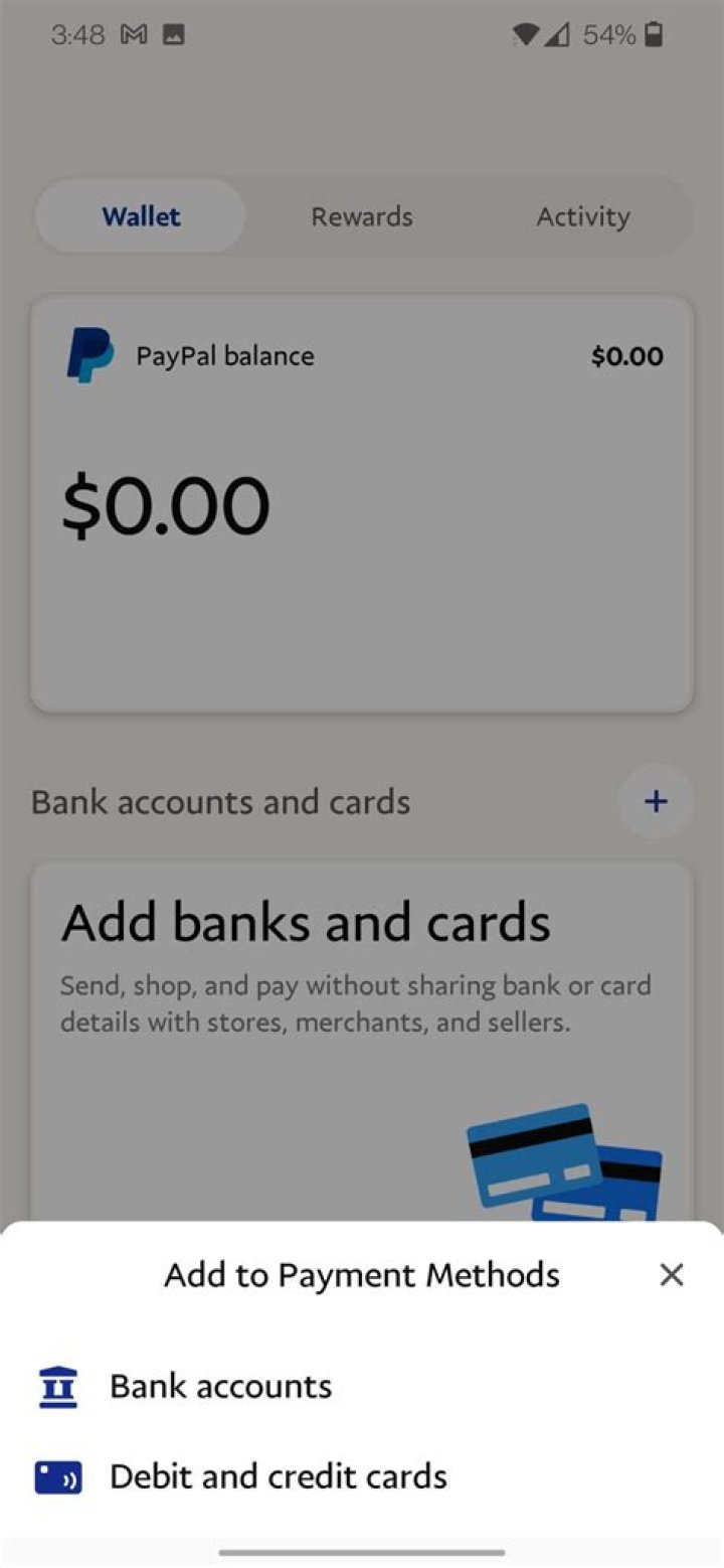On your phone, open the Google Pay app .At the top, tap the card button .Tap Add a payment method. You might need to swipe all the way left to find this option.Tap PayPal.To link your PayPal account, follow the on-screen instructions.