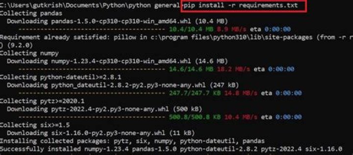 You can install from a requirement file: pip install -r requirements. txt . You can also list all installed packages and put it in a requirement file: pip freeze > requirement.