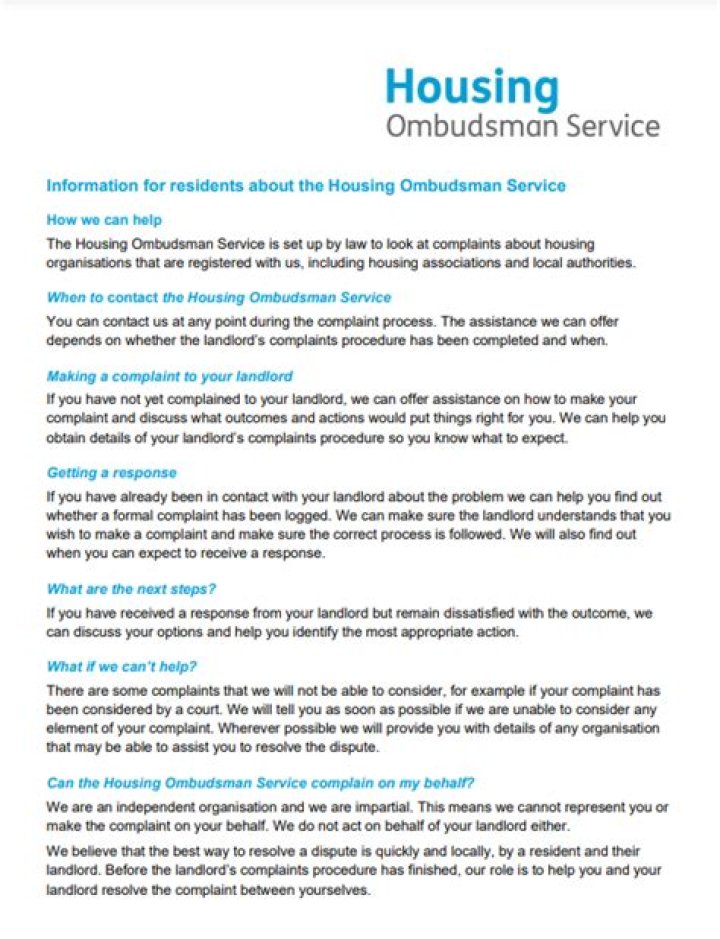 If no timescale is given, we suggest it is reasonable to allow up to three weeks for a response. If the landlord delays unreasonably in responding to the formal complaint, you can contact us.