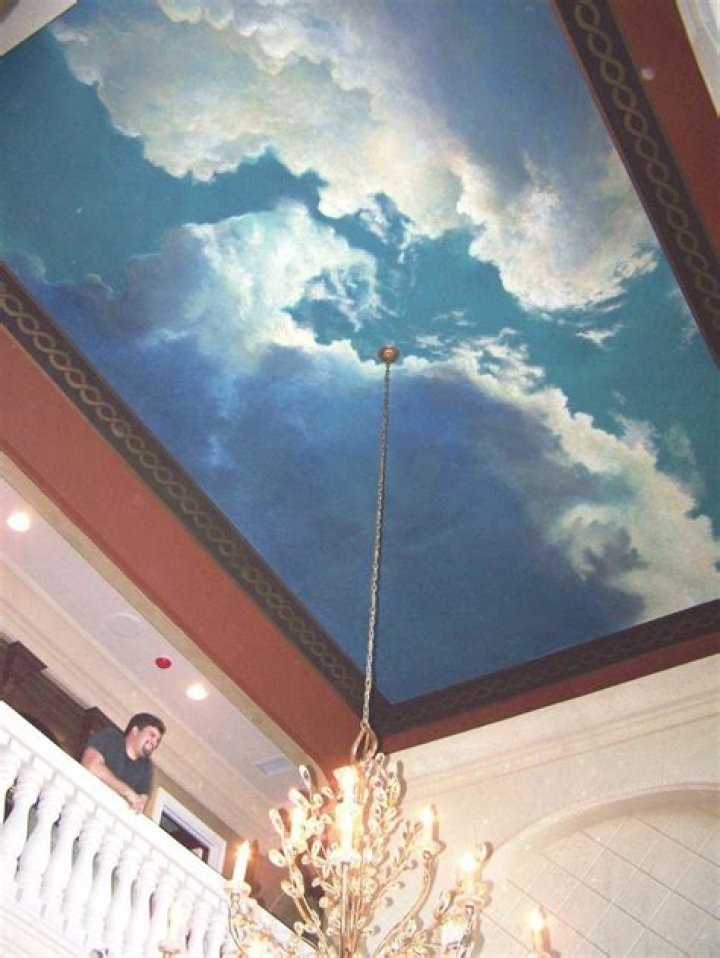 Dampen a sea sponge and a piece of cheesecloth and wring them out. Dip the sponge into the glaze mixture and dab the wall or ceiling to create cloud shapes. Remember to give your clouds varying asymmetrical shapes for a more realistic and appealing effect.How do I make my ceiling sparkle?