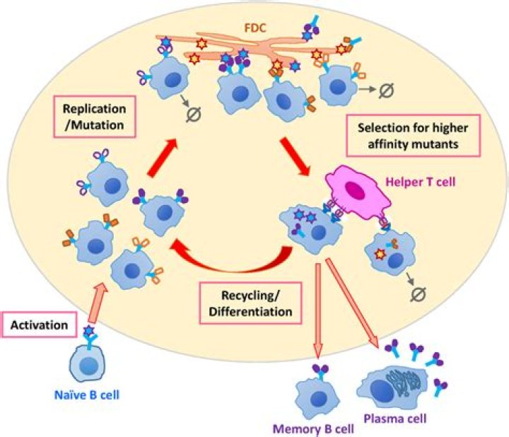 Immature B cells are very sensitive to antigen binding, so if they bind self antigen in the bone marrow they die. B cells that do not bind self antigen express d chain and membrane IgD with their IgM about the time they leave the marrow and become mature naive (resting) B cells.How do naive B cells become plasma cells?