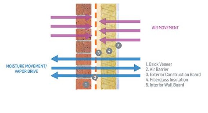 If water vapor diffuses or infiltrates into the wall cavity and finds the cool surface, moisture problems can occur. Of course, you can have moisture problems here even without the exterior vapor barrier because of what Bill Rose calls the rule of material wetting.