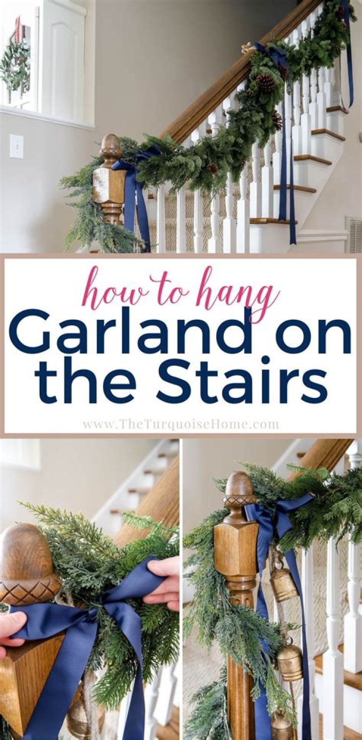 Measuring a staircase banister or mantel to swag garland. Measure the LENGTH of the banister or the WIDTH of the mantel, then calculate one-and-a-half times that dimension. Example: 6-ft. W mantel x 1.5 = 9 feet of garland.How do you hang garland without command hooks?