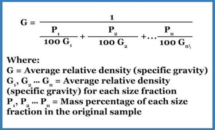 Bulk Specific Gravity (also known as Bulk Dry Specific Gravity): The ratio of the weight in air of a unit volume of aggregate at a stated temperature to the weight in air of an equal volume of gas-free distilled water at the stated temperature.