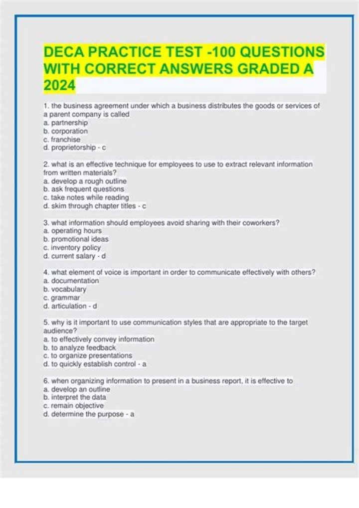 EXAM BLUEPRINTS. DECA’s exams are rigorous, industry-validated, multiple-choice, 100-item exams based on National Curriculum Standards. They are designed to assess members’ knowledge in defined instructional areas.