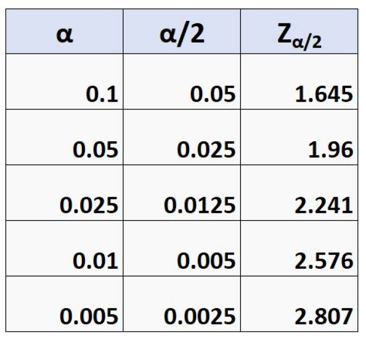 confidence level 90%: zα/2 = z 0.05 = 1.645. confidence level 95%: zα/2 = z 0.025 = 1.96.