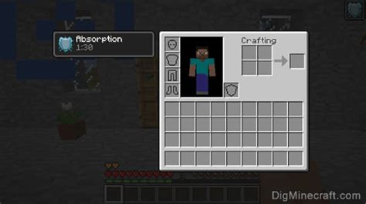Absorption in Minecraft is the key to gaining an advantage against other players and mobs during conflict. … This effect adds two yellow hearts (four health points) to a player’s health bar.