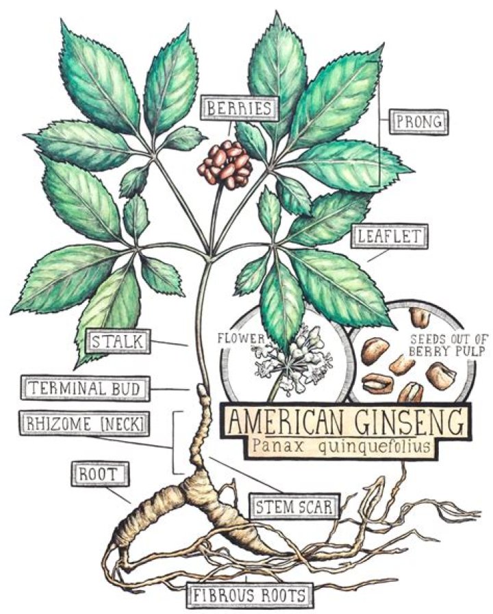 Wild American ginseng, Panax quinquefolius, is native to the deciduous forest of the United States, from the Midwest to Maine, and further north into Eastern Canada. The most popular habitat where wild ginseng is found is throughout the Appalachian and Ozark region.