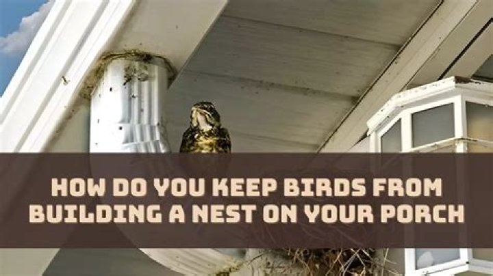 Mount a plastic hawk on or near your porch. … Hang reflective bird diverters from strings at three or four locations around your porch. … Cut reflective flash tape in different lengths, and hang it from string around the perimeter of your porch.