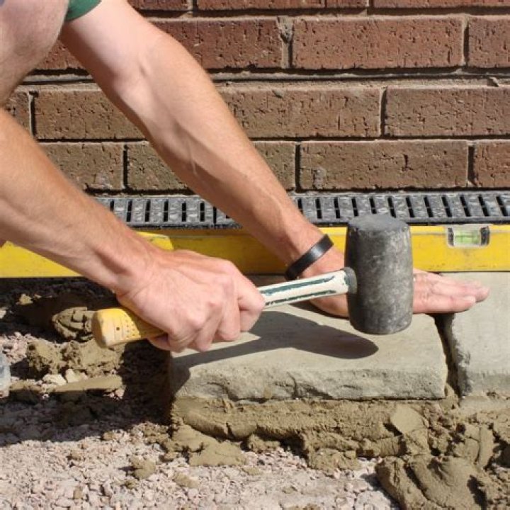 The mortar should be damp, not runny. Spread it out and level it with a trowel. The mortar bed needs to be 30-40mm thick and should enable the slabs, when positioned, to sit 6-10mm high.