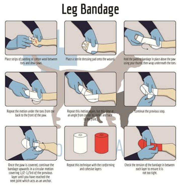 A bandage is used to hold a dressing in place over a wound, to create pressure over a bleeding wound for control of hemor- rhage, to secure a splint to an injured part of the body, and to provide support to an injured part.