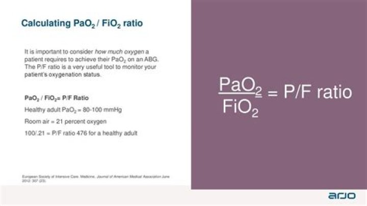 The P/F ratio is a simple way to assess the severity of hypoxemia. It’s the ratio of the PaO2 (arterial oxygen partial pressure obtained from an arterial blood gas) to the FiO2 (fraction of inspired oxygen expressed as a decimal).
