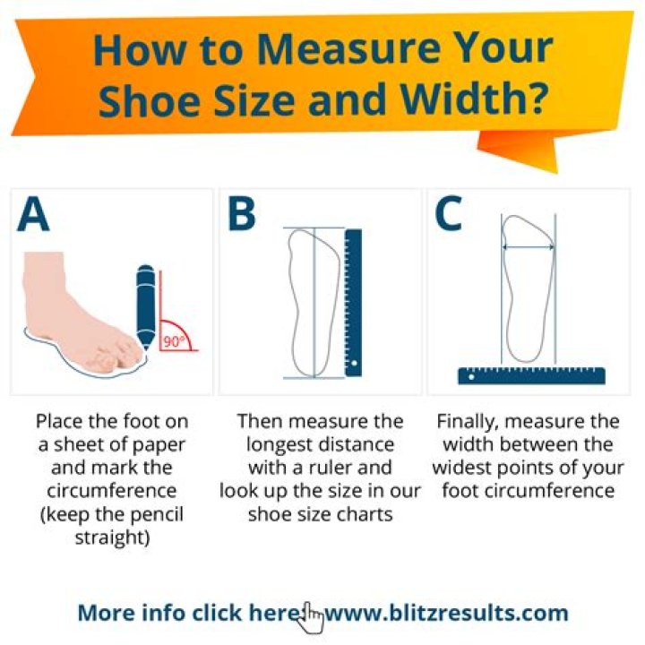 Wrap a tape measure around the widest part of your bare foot. Place a foot on the ground as if you were standing normally. Mark the width of your foot in millimetres on the tape measure. Use this measurement to determine the shoe width you need.