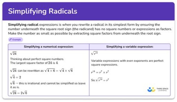 - Find the largest factor in the radicand that is a perfect power of the index. Rewrite the radicand as a product of two factors, using that factor.