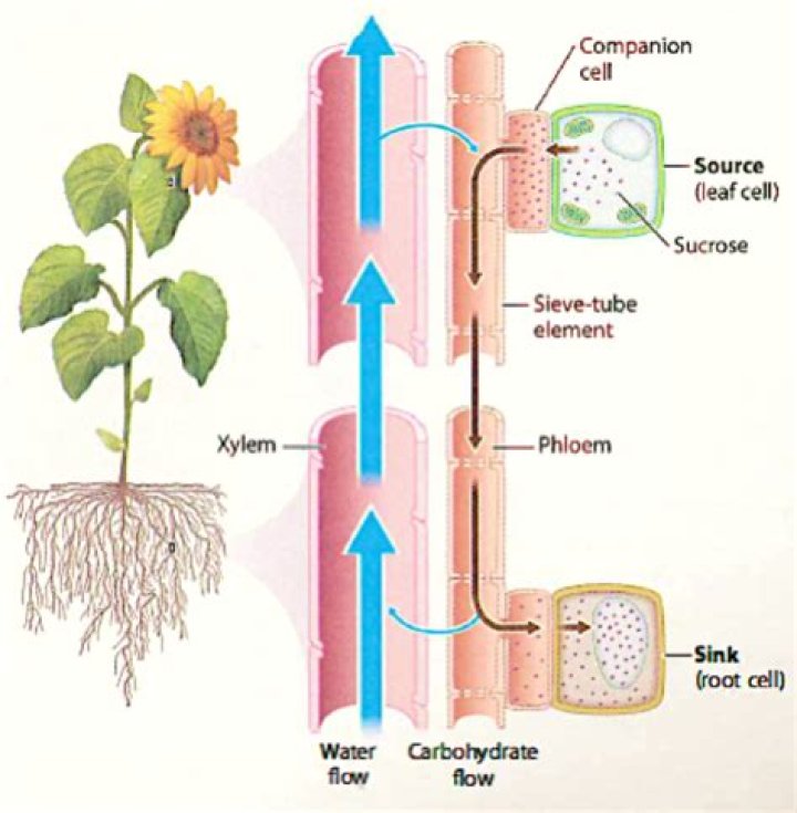 How is sugar transported from leaves to flowers?