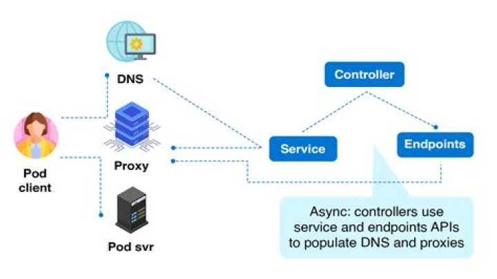 Communication between pods and services In Kubernetes, a service lets you map a single IP address to a set of pods. You make requests to one endpoint (domain name/IP address) and the service proxies requests to a pod in that service. This happens via kube-proxy a small process that Kubernetes runs inside every node.