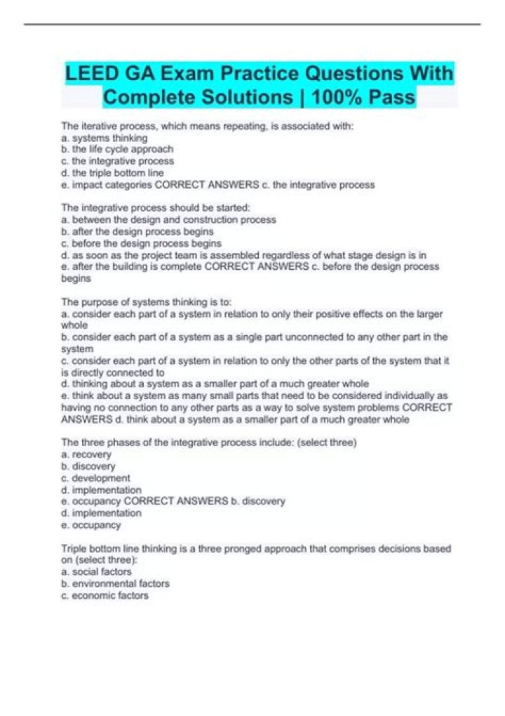 The LEED® Green Associate exam contains 100 randomly delivered multiple choice questions that must be completed in 2 hours. In order to pass all the LEED Professional exams, candidates must score 170 points out of 200 possible points. 125 is the minimum score in all the LEED Professional exams.