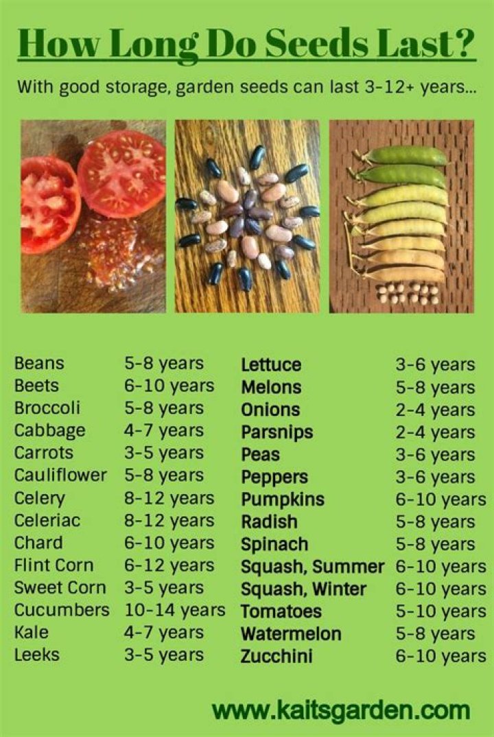Spinach, lettuce, parsnip, and corn seeds are generally only viable for about a year; bean seeds may germinate after two years. The seeds of many squash varieties are often good for three or four years.