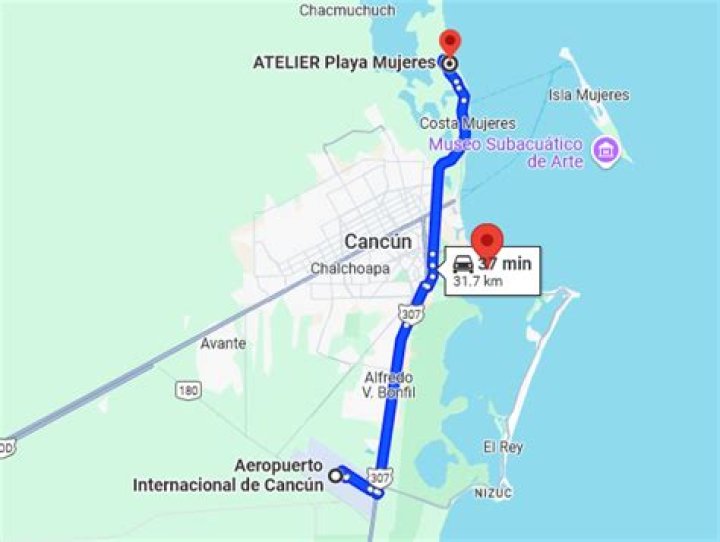 How long does it take to get from Isla Mujeres to Cancun airport