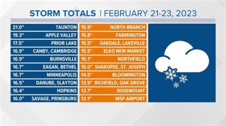 How many inches of snow did St Paul MN get