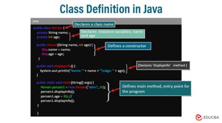 A class — in the context of Java — is a template used to create objects and to define object data types and methods. Classes are categories, and objects are items within each category. … Core properties include the actual attributes/values and methods that may be used by the object.