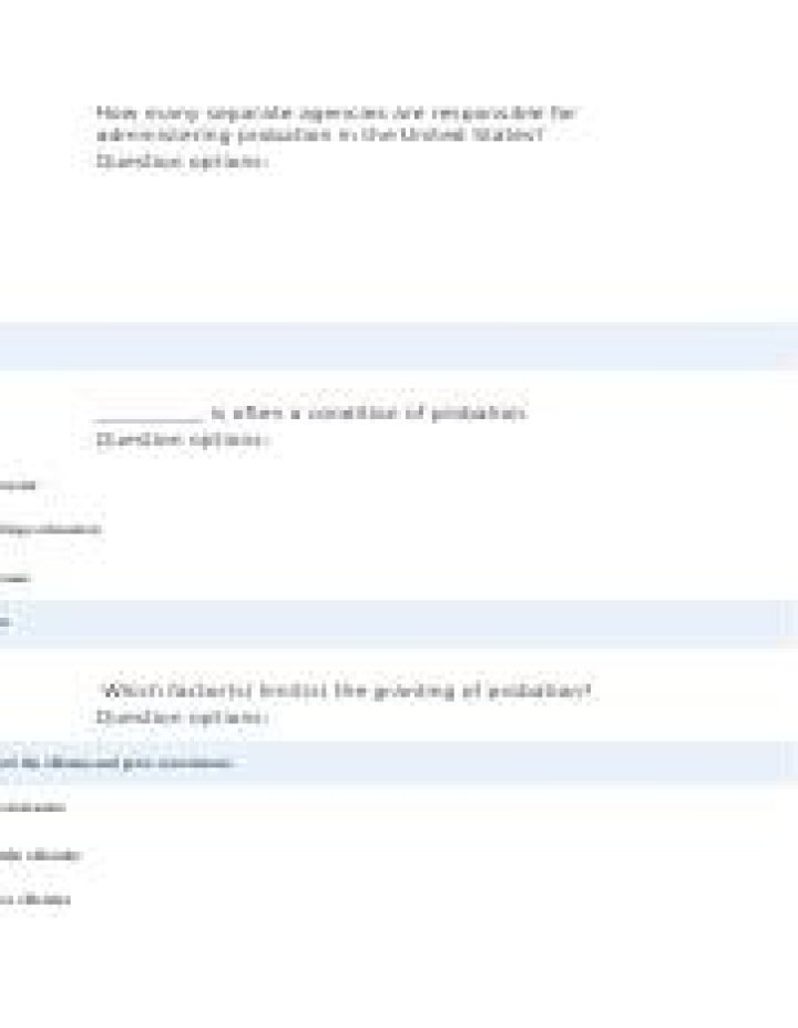There are more than 2,000 separate agencies responsible for administering probation in the United States. There are approximately 1 million adult offenders on probation in the United States. The majority of all adult probation agencies fall under the Legislative branch of government.