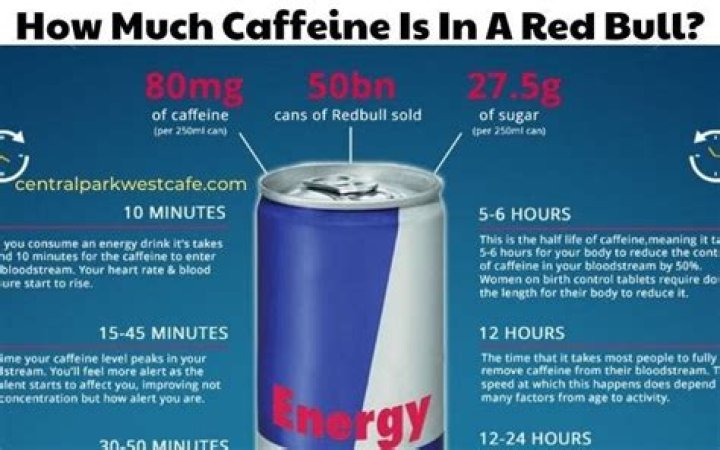 While safe doses of caffeine vary by individual, current research recommends limiting caffeine to 400 mg per day or less in healthy adults ( 28 ). As one small 8.4-ounce (260-ml) can of Red Bull provides 75 mg of caffeine, drinking more than 5 cans per day could increase your risk of caffeine overdose ( 2 ).