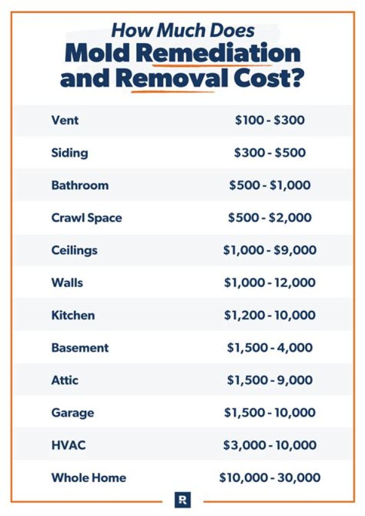 On average, mold removal costs $2,347, with a typical price range between $1,373 and $3,325 or between $13.33 and $28.33 per square foot. Small mold remediation projects have an average cost of $458, while large-scale remediation averages around $6,333.