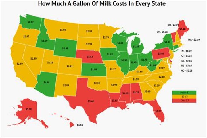 [hide]Milk prices by state, September 2018StateState capital (or other large city)CostCaliforniaSacramento$2.69ColoradoDenver$2.29ConnecticutHartford$1.35
