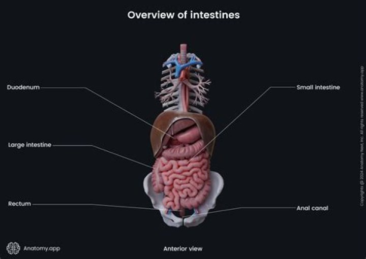 The small intestine is the part of the gastrointestinal tract that follows the stomach, which is in turn followed by the large intestine. The small intestine is the site where almost all of the digestion and absorption of nutrients and minerals from food takes place.