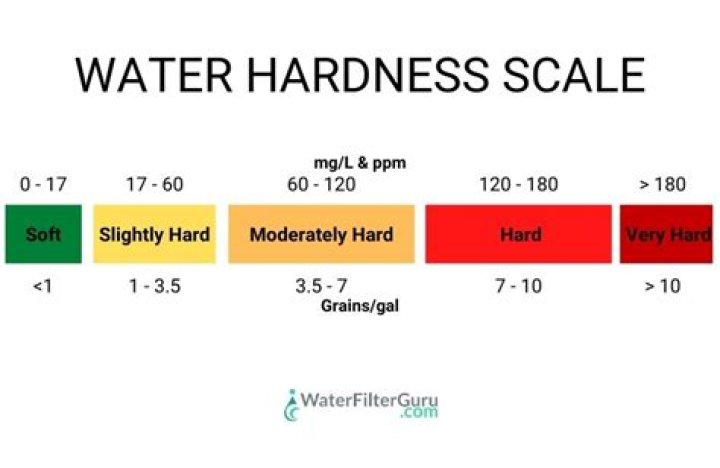 grains per gallon (gpg)milligrams per liter (mg/L) parts per million (ppm)U.S. Geological Survey Classification< 1.0< 17.1soft1 to 3.517.1 to 60soft3.5 to 7.060 – 120moderately hard7.0 to 10.5120 – 180hard