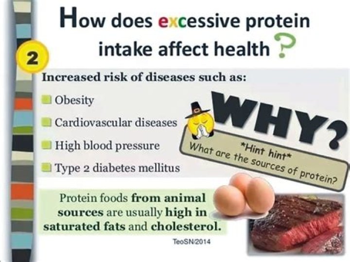 Eating too much protein can be bad for your health. “Protein has calories, so if you eat a little too much, and don‘t exercise, it can get stored as fat.”