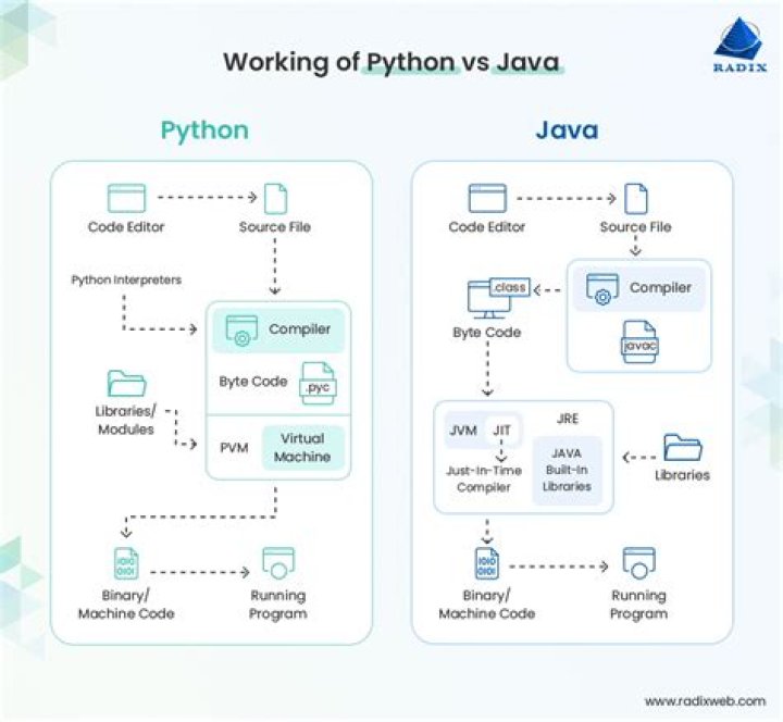 Python and Java are two of the most popular and robust programming languages. Java is generally faster and more efficient than Python because it is a compiled language. As an interpreted language, Python has simpler, more concise syntax than Java. It can perform the same function as Java in fewer lines of code.