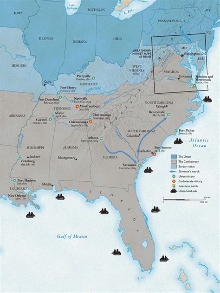 The Civil War was fought in thousands of different places, from southern Pennsylvania to Texas; from New Mexico to the Florida coast. The majority of the fighting took place in the states of Virginia and Tennessee.