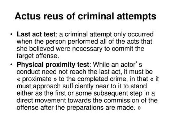 The last act test looks at whether an attempt has occurred, at least by the time a person has performed all the acts believed to be necessary to commit the target offense. For example, an attempted robbery does not occur until the robber displays his or her gun and demands property (Dressler, 2001).