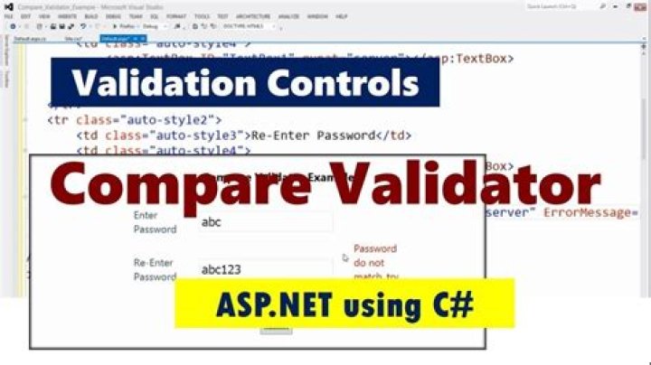 Which validator control you use if you need to make sure the values in two different controls matched? Compare Validator control.What is the use of regular expression validator in asp net?