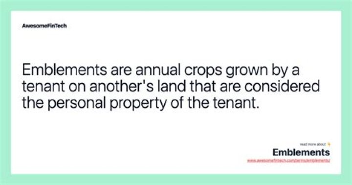 Emblements are the annual crops (e.g. corn, wheat, rye, potatoes, garden vegetables) produced by labor as opposed to crops that occur naturally. Crops that are not considered emblements include trees, grass, and naturally growing fruit.