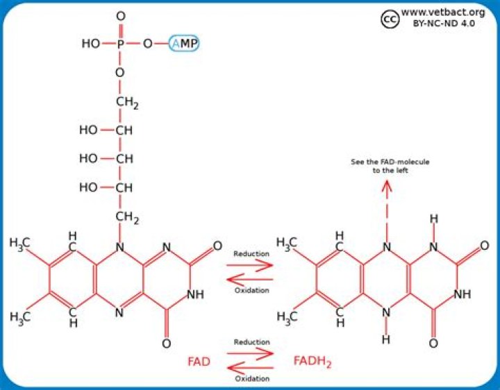 In biochemistry, flavin adenine dinucleotide (FAD) is a redox-active coenzyme associated with various proteins, which is involved with several enzymatic reactions in metabolism. A flavoprotein is a protein that contains a flavin group, which may be in the form of FAD or flavin mononucleotide (FMN).What is the function of NADH in biosynthesis?
