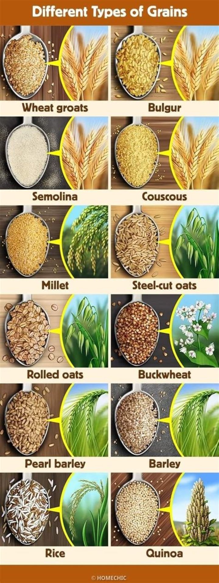 What are 10 examples of grains?